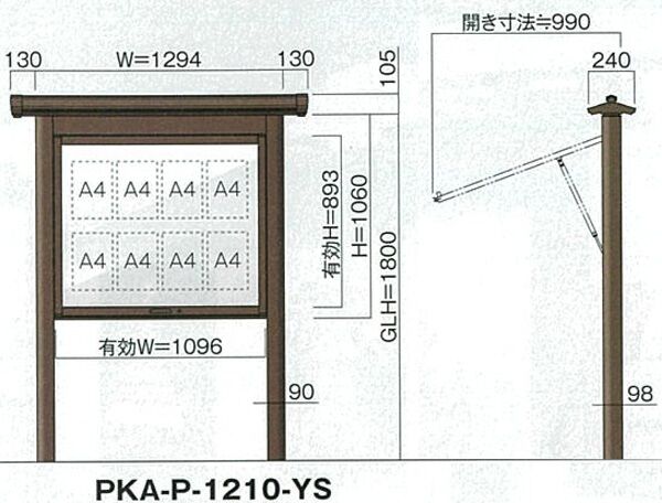 【KASHII】 PKA-P-1210-YS 跳ね上げタイプ PKA-P型 照明なし 和風自立タイプ 強化ガラス【取寄品】