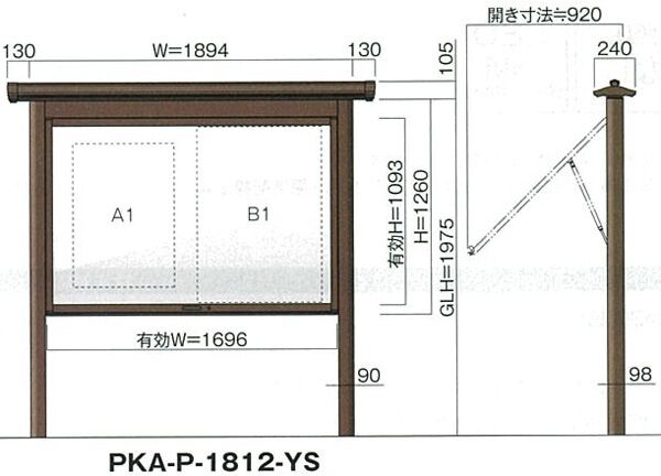 【KASHII】 PKA-P-1812-YS 跳ね上げタイプ PKA-P型 照明なし 和風自立タイプ 強化ガラス【取寄品】