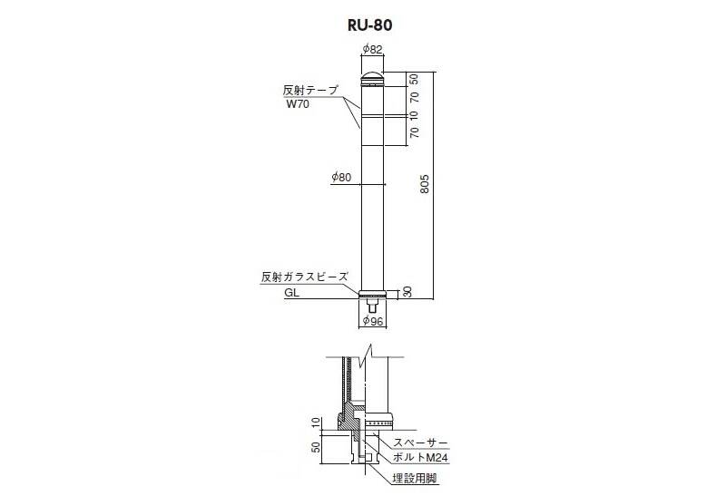 【サンポール】 RU-80(C) ウレタン製ポスト 可動式【取寄品】
