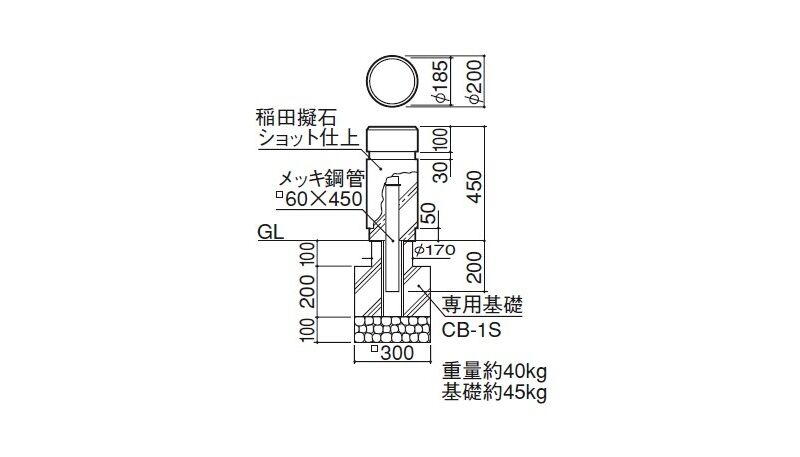 【サンポール】 SG-150S 擬石ボラード 可動式【取寄品】