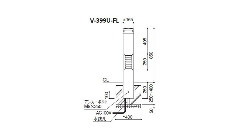 【サンポール】 VL-399U-FL 照明内蔵ボラード 固定式【取寄品】