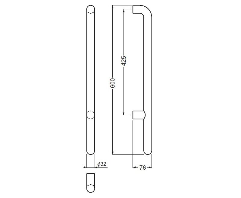 F形丸棒取手 両面用(真チュウ/M8×70) 標準扉厚 10mm~48mm