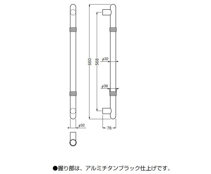 ●握り部は、アルミチタンブラック仕上げです。