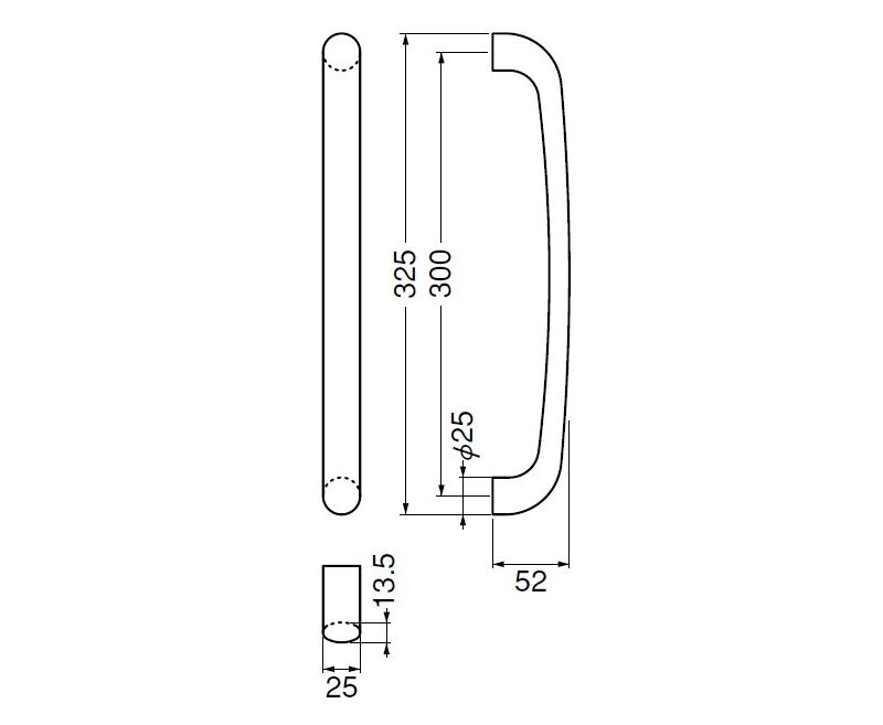 全長(L):325 足巾(P):300 高サ(H):52 座巾(W):25φ 径(D1×D2):25×15