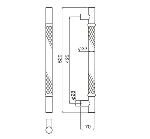 イントレチャート取手 両面用(ステンレス+本革/M8×60)標準扉厚33~41mm