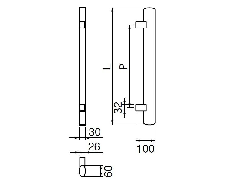 全長(L):600 足巾(P):425 高サ(H):100 座 巾(W1):32 座 巾(W2):26 D1×D2:30×60