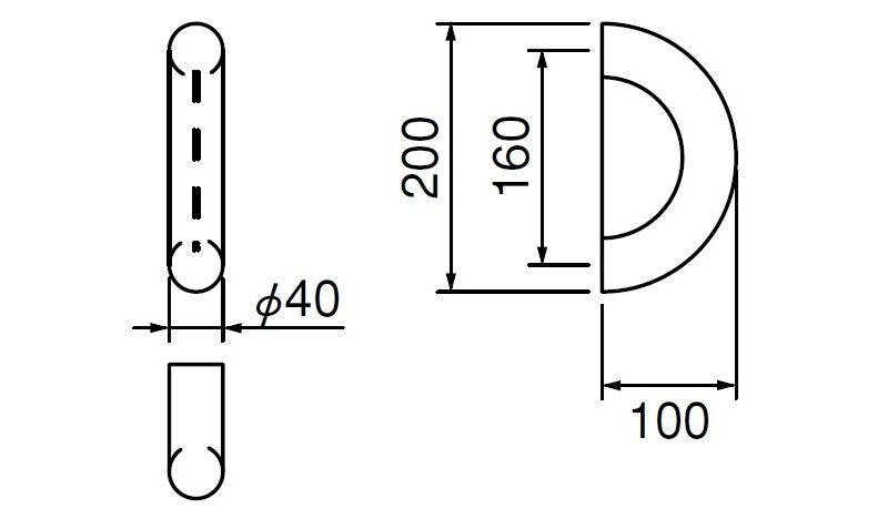 全長(L):200 足巾(P):160 高サ(H):100 座 巾(W1):40φ 座 巾(W2):40φ