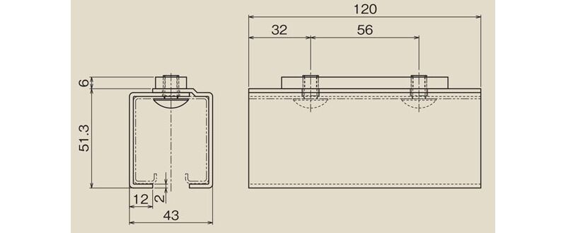 ハンガーレールの接続金具です。ブラケットと(受金具)ブラケットの間でのレールの接続に用います。