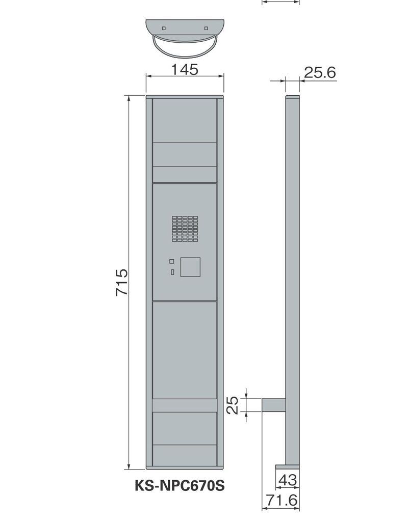 サイズ H715×W145×D43[71.6] [ ]内はガードバー・照明を含む寸法です。
