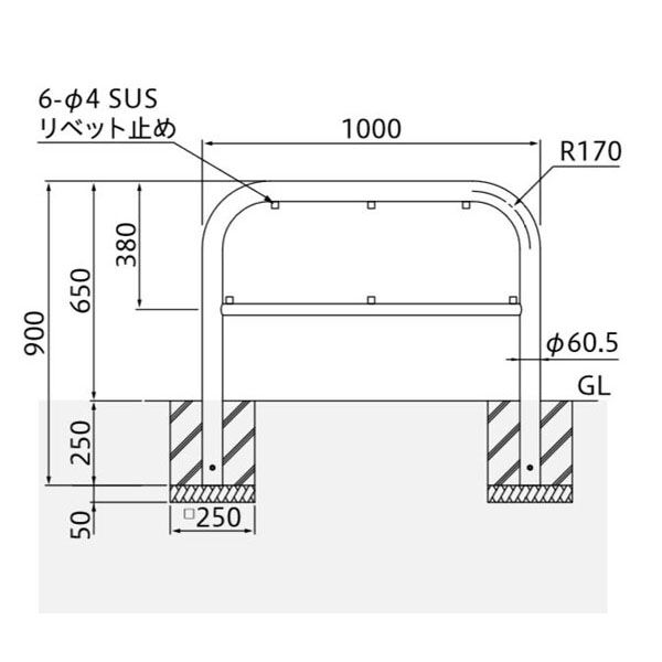 サインタイプ 車止め スチール製 φ60.5 W1000
