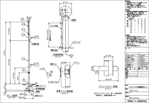 【SDAT(旧昭和電工アルミ販売)】 5EP-Uzx 旗ポール テーパーハンドルタイプ 埋込式【取寄品】