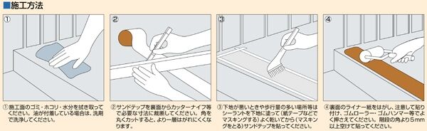 注)人造砥粒を使用しているので、素足で踏む場所には貼らないで下さい。