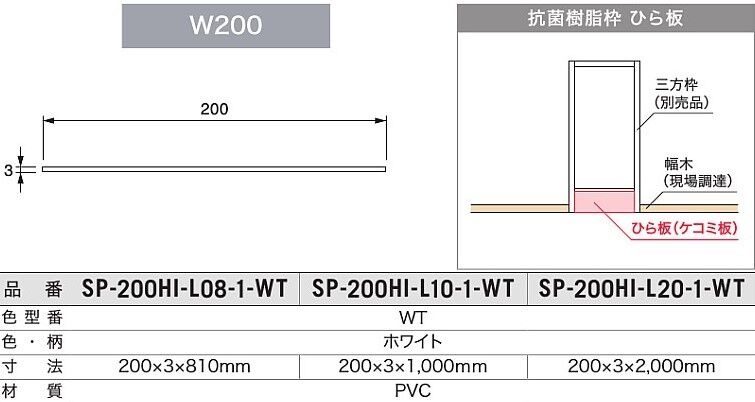 【城東テクノ】 SP-200HI-L08-1-WT 抗菌樹脂枠 ひら板【取寄品】