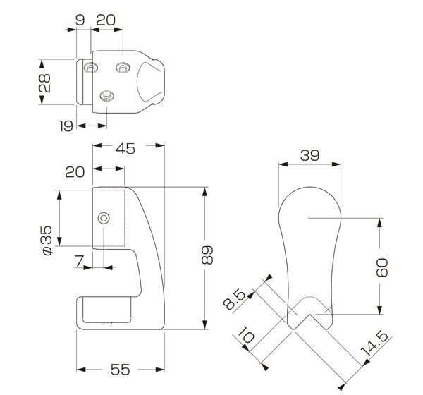 35Φスリム出隅用ブラケット 35Φスリム出隅用ブラケット