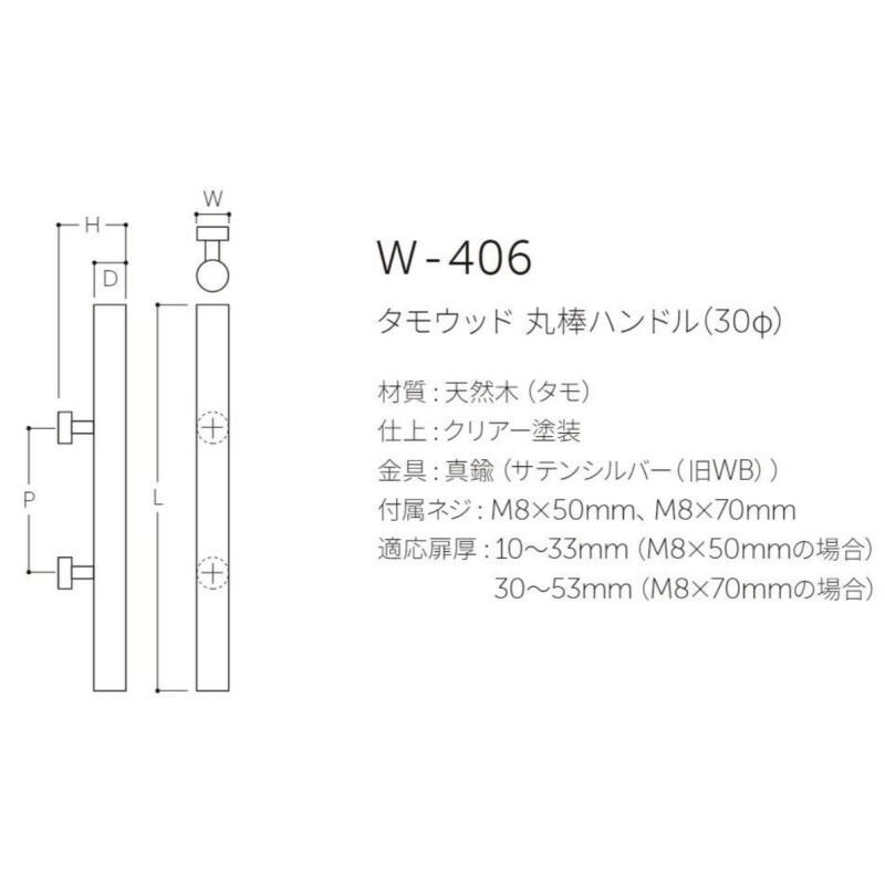 【MARUKI HARDWARE CORPORATION(旧丸喜金属本社)】 W-406 タモウッド 丸棒ハンドル(両面用)(30Φ)(旧:福岡ハンドル)【取寄品】