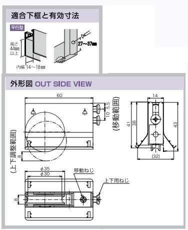 戸車サイズ:厚み14×高さ44×長さ60mm