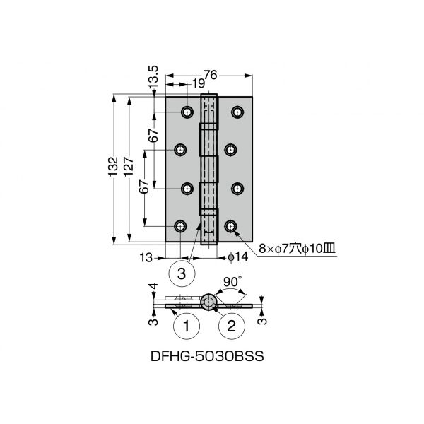 ステンレス鋼製ボールベアリング丁番 DFHG-5030BSS