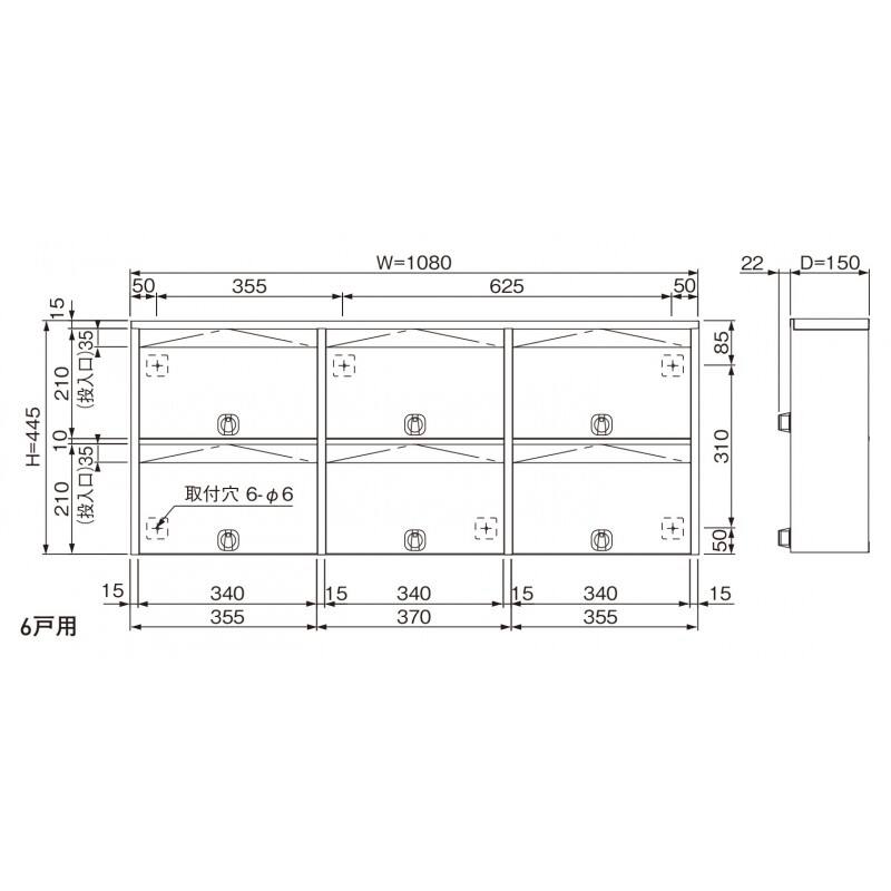 RYポスト 6戸用 ダイヤル錠 前入前出タイプ 屋内仕様