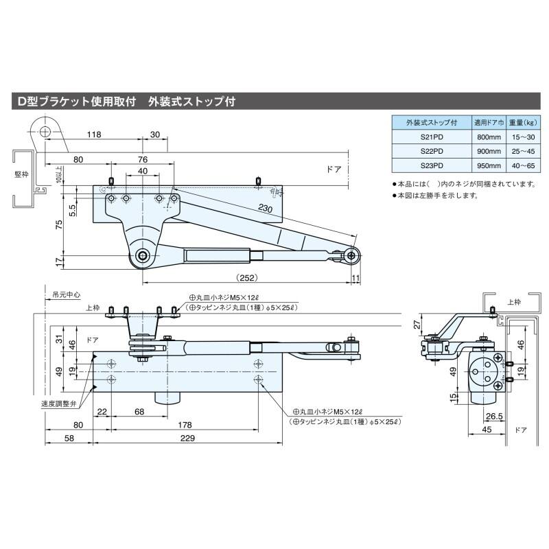 【RYOBI】 S21PD ドアクローザ【取寄品】