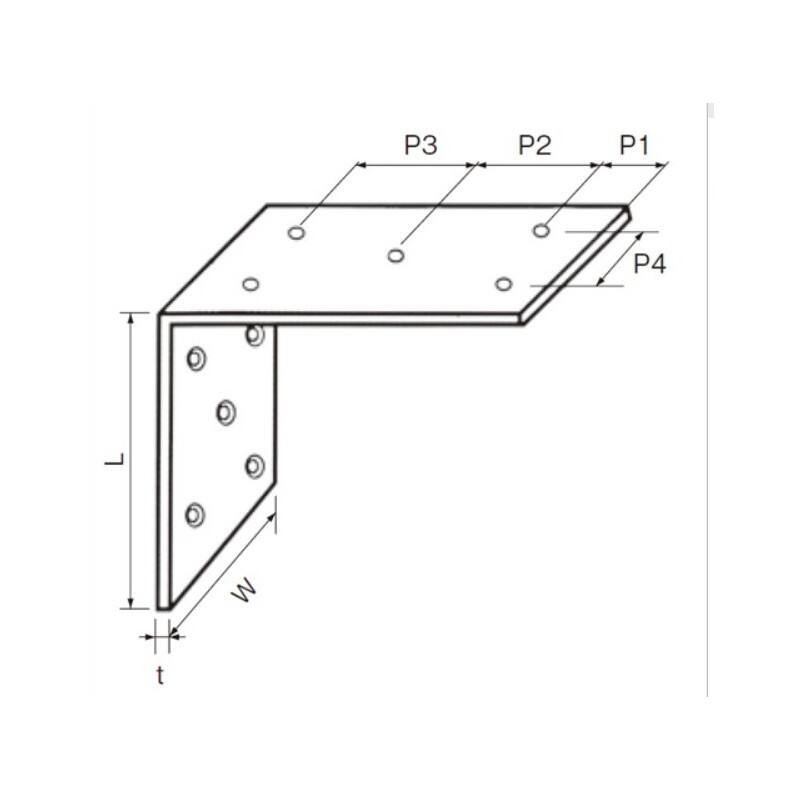 サイズ:t:4.5mm、w:60mm、L:150mm、P1:25mm、P2:50mm、P3:50mm、P4:42mm