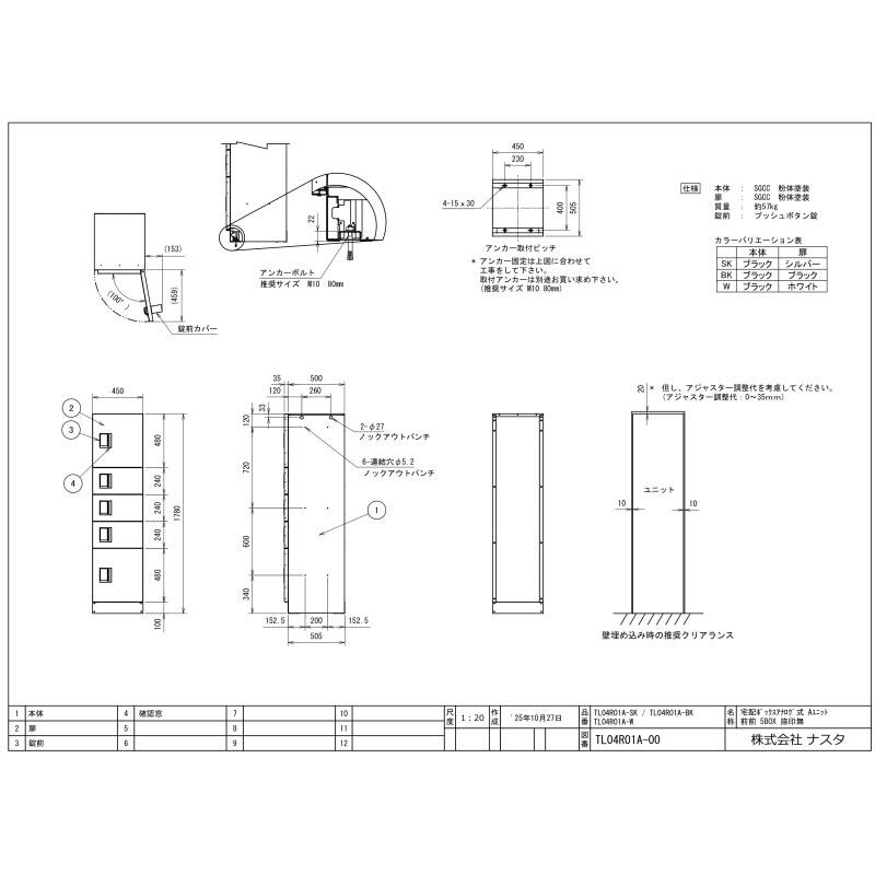 【ナスタ(キョーワナスタ)】 KS-TL04R01A-SK 宅配ボックス(STANDARD)前入前出/アナログキー・防水タイプ(W450×H1780×D535)【取寄品】
