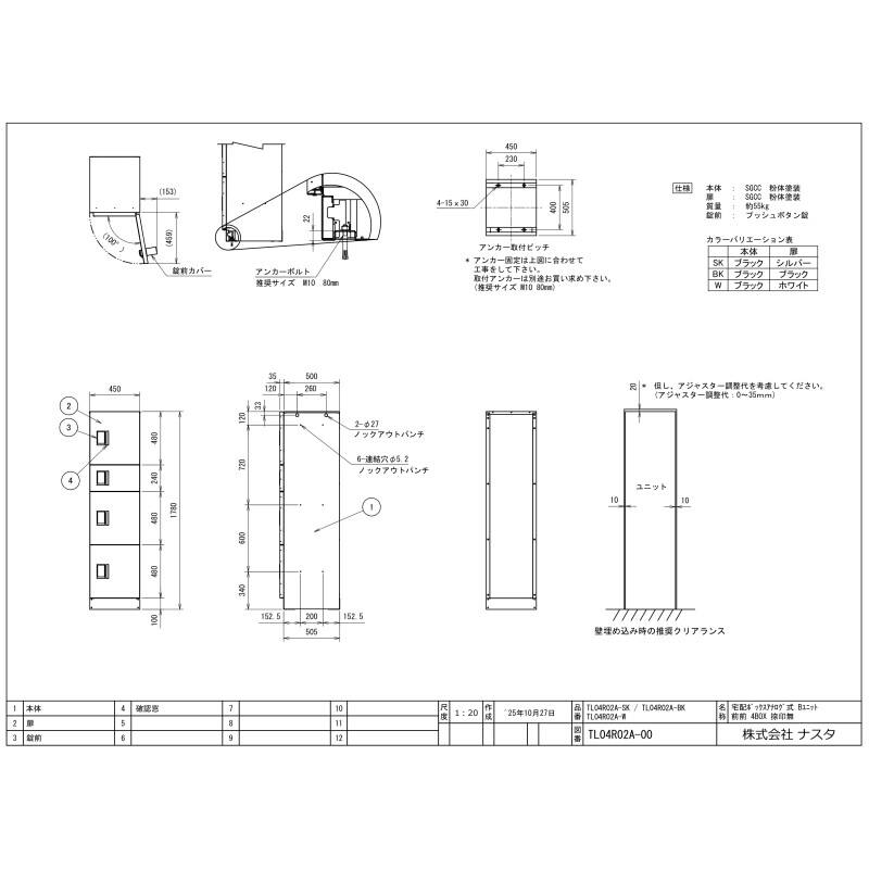 【ナスタ(キョーワナスタ)】 KS-TL04R02A-SK 宅配ボックス(STANDARD)前入前出/アナログキー・防水タイプ(W450×H1780×D535)【取寄品】