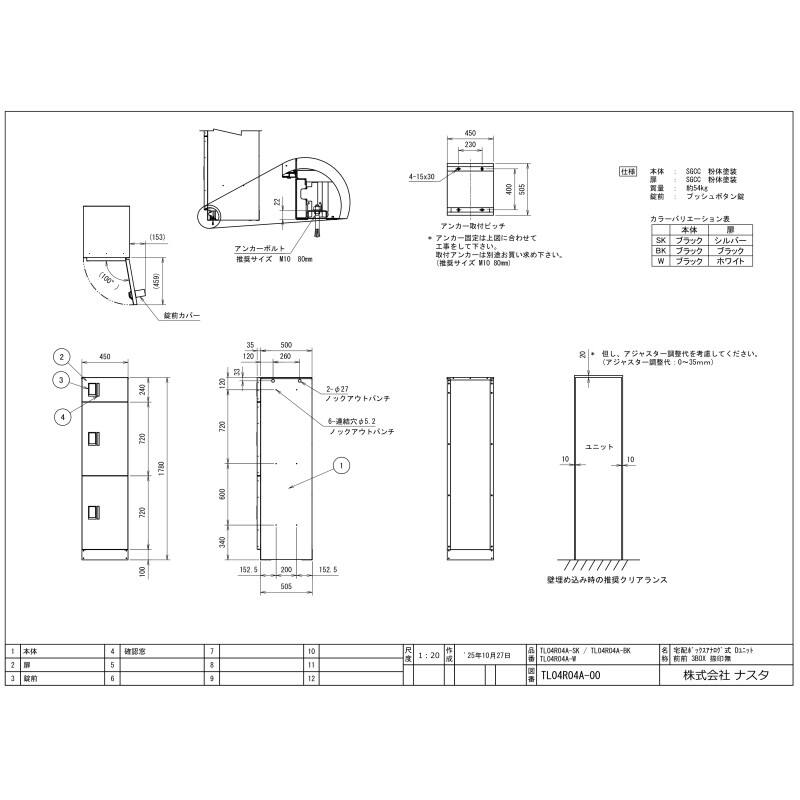 【ナスタ(キョーワナスタ)】 KS-TL04R04A-SK 宅配ボックス(STANDARD)前入前出/アナログキー・防水タイプ(W450×H1780×D535)【取寄品】