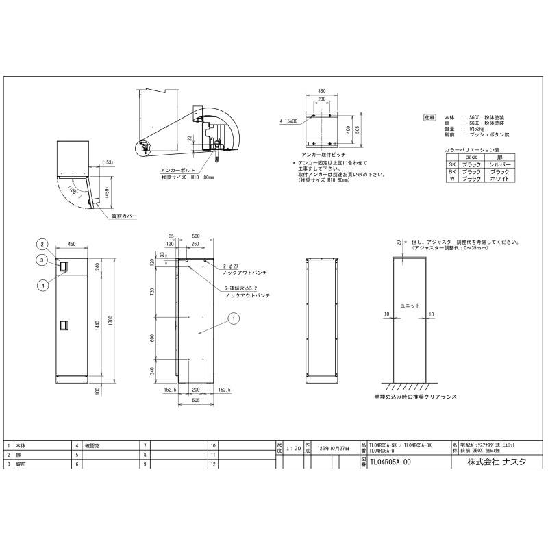 【ナスタ(キョーワナスタ)】 KS-TL04R05A-SK 宅配ボックス(STANDARD)前入前出/アナログキー・防水タイプ(W450×H1780×D535)【取寄品】