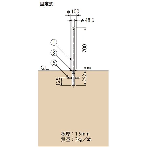 その他 Φ48.6×700mm <チェーン内蔵タイプ>